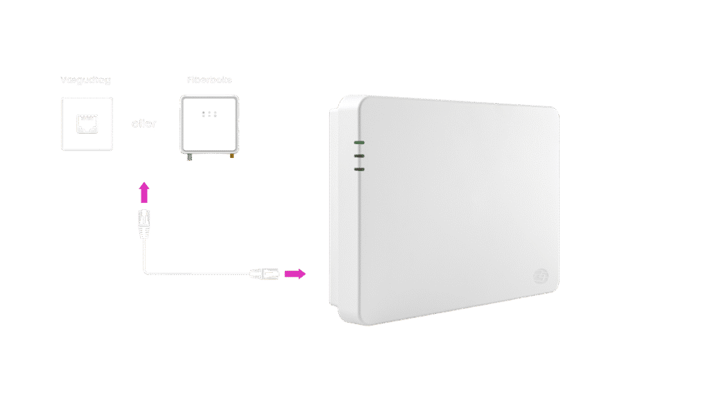 For at tjekke om du har forbindelse fra vægudtaget/fiberboksen, kan du lave kablet forbindelse. Måden du tester forbindelsen kablet på, er ved at tilslutte netværkskablet direkte fra dit vægudtag/fiberboks til en PC, altså udenom routeren.